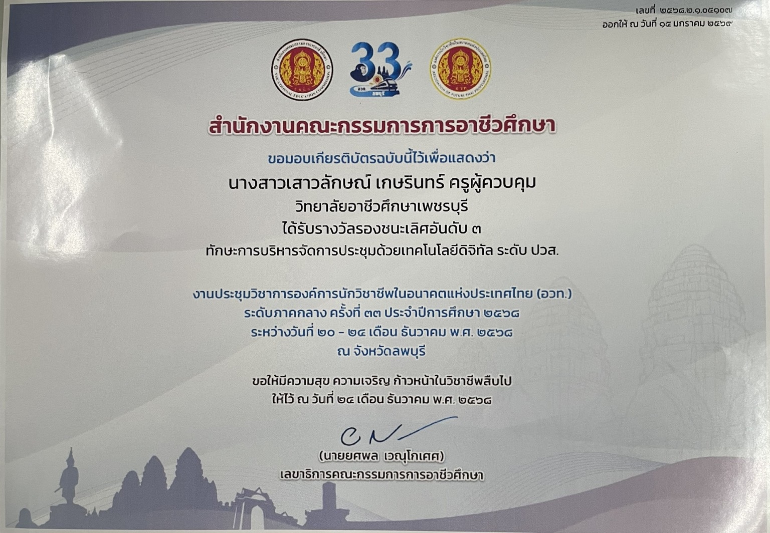 การแข่งขันทักษะวิชาชีพ "การบริหารจัดการประชุมด้วยเทคโนโลยีดิจิทัล" ระดับ ปวส. |